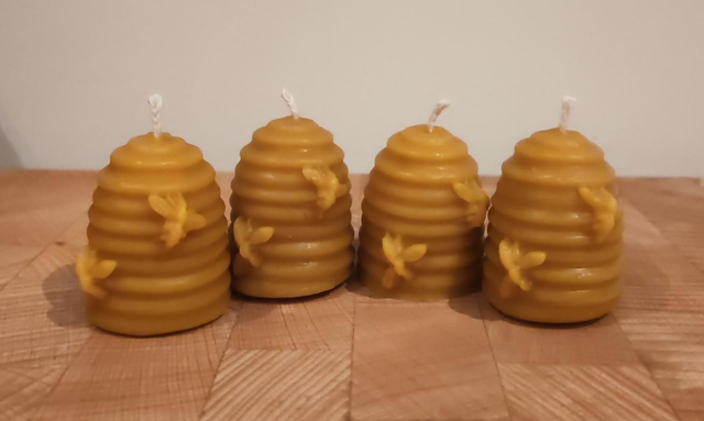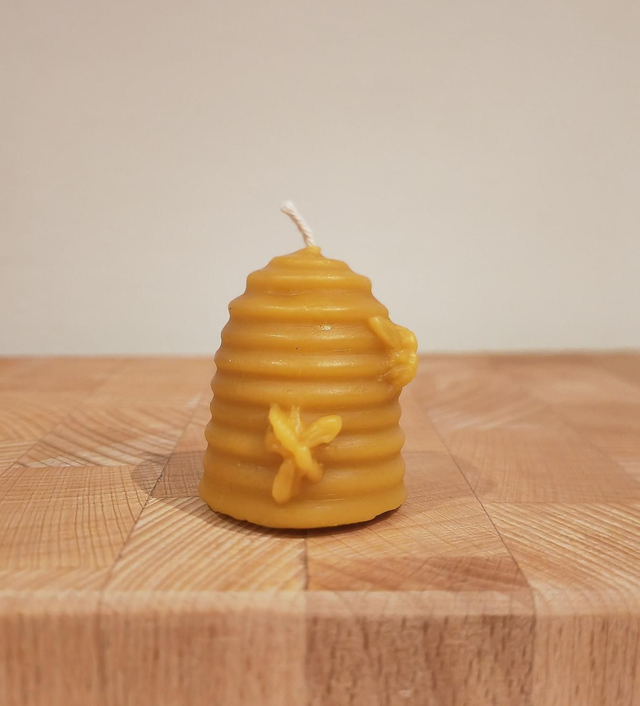 Our Bee Skep candle is handmade by rendering down beeswax cappings which are then cleaned to make a premium product with a lovely natural yellow beeswax colour, it's then re-melted and hand poured into moulds to make these wonderful candles ready for you to enjoy at home. Our candles are pure beeswax so no chemicals, paraffin wax or scents are added leaving only a natural honey scent. beeswax is harder and denser than other types of candle wax and burns at a higher temperature, making it the perfect choice for longer-lasting candles. Material's 100% Beeswax + 100% Cotton wick