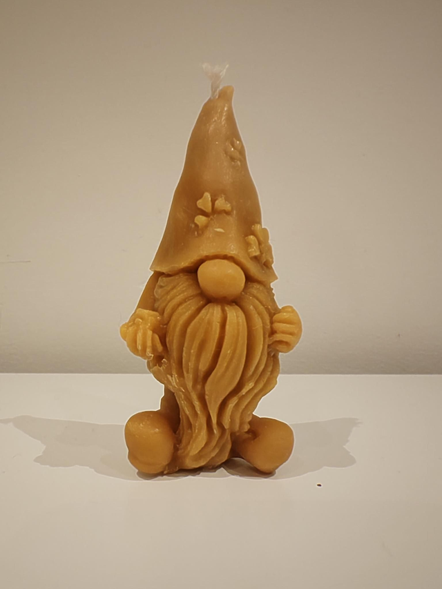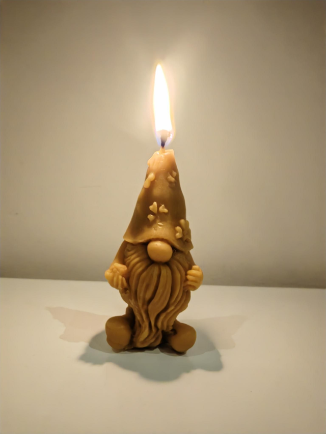 Our 100% Gonk candle is handmade by rendering down beeswax cappings which are then cleaned to make a premium product with a lovely natural yellow beeswax colour, it's then re-melted and hand poured into moulds to make these wonderful candles ready for you to enjoy at home.